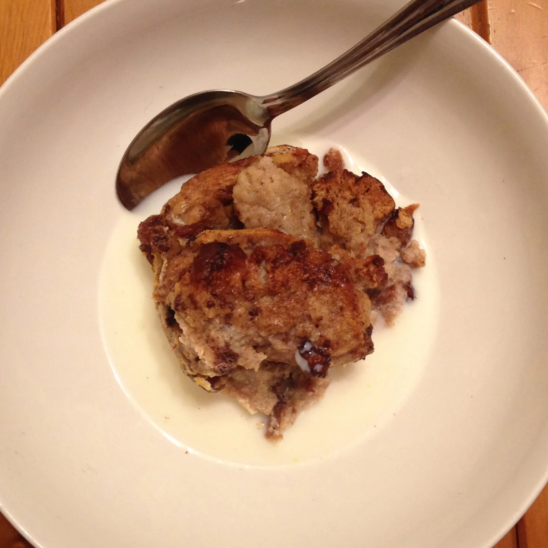 I based my recipe upon Alexa Johnston's in What's for pudding? and used plenty of sultanas but used low fat milk instead of cream (hey it was a last minute pudding making session). I probably should have added more milk but thats ok, I was slightly haphazard adding estimations of whatever. But here is what I think you should add . . .