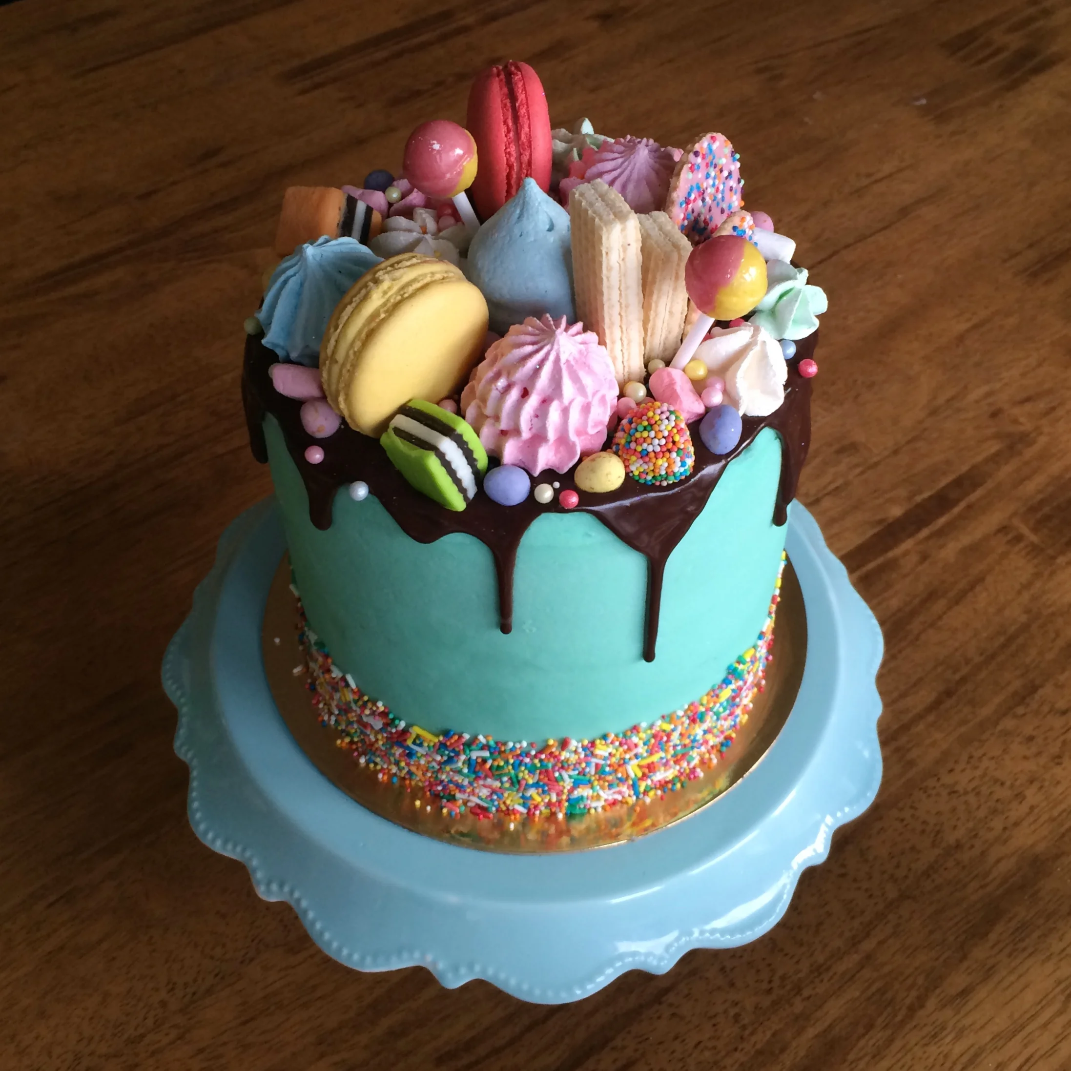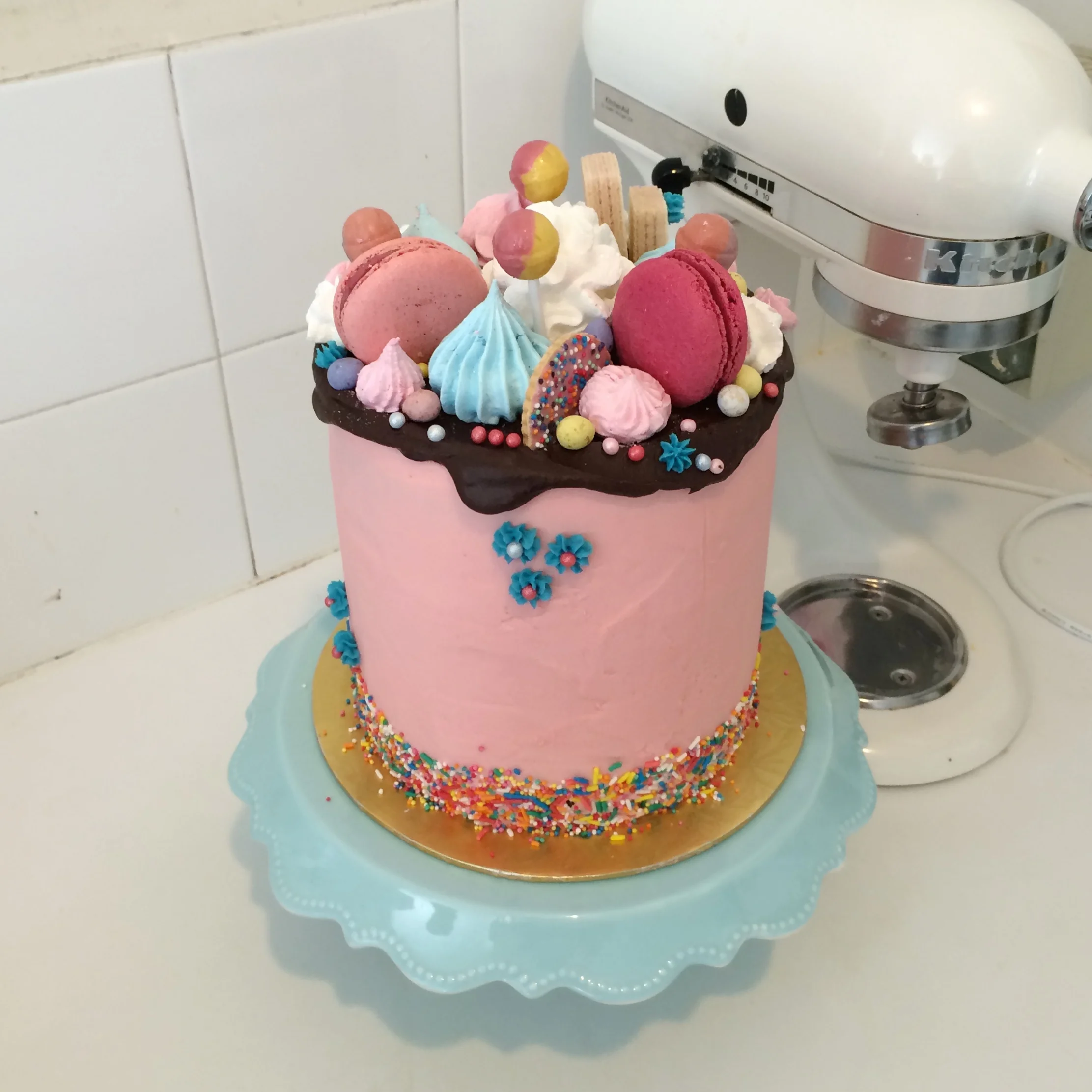Aka the cake that had a unicorn explode all over the top of it. Three extra moist layers of rich chocolate cake all bundled up in a layer or two of lush vanilla buttercream and of course topped with dark chocolate ganache and decorated with all of that snazz. 15cm diameter and enough to serve up to 15 people.
