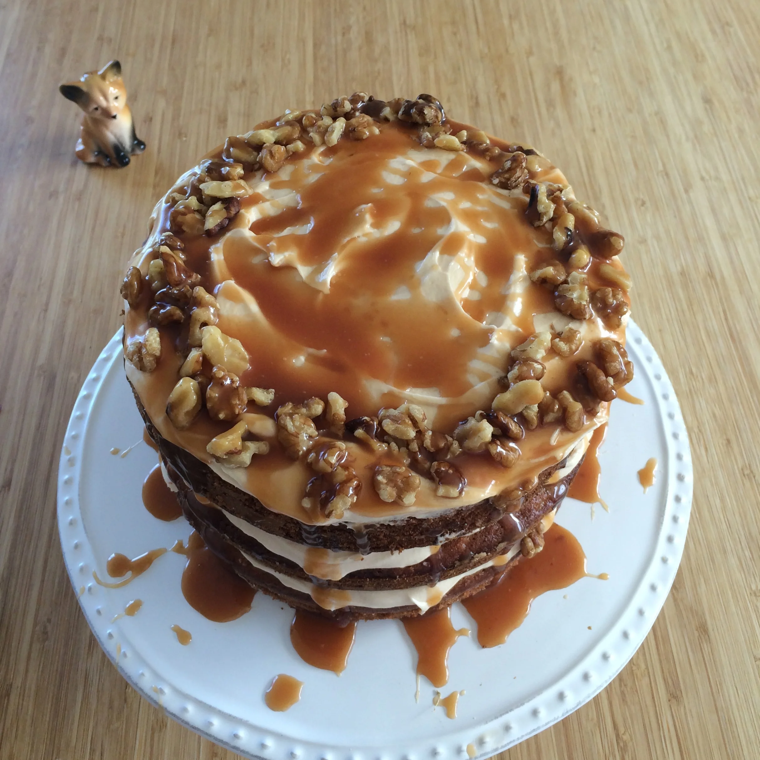 Do I even need to explain? Three layers of fruity banana cake smothered in cream cheese icing, walnuts and caramel. Three 20cm layers of cake all piled up to form one tower of beauty. Serves around 12-15 depending on how greedy your friends are.