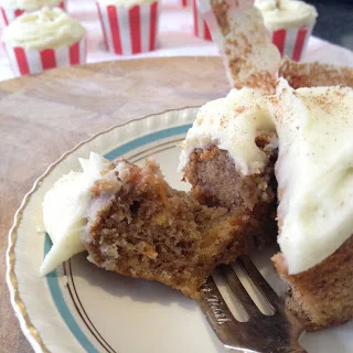 It was only now that I realised I hadn't actually blogged about hummingbird cake. At least I don't think I have. This recipe was originally for a three layered cake but the final destination of these little cakes called for them to be individually wrapped in share friendly paper cases. You can use the exact same quantities for a triple layer cake, just spread the batter between three sandwich tins and bake for around 35 minutes. This same recipe made 12 of these baby cakes and a 20cm cake. What you do with the batter is up to you.