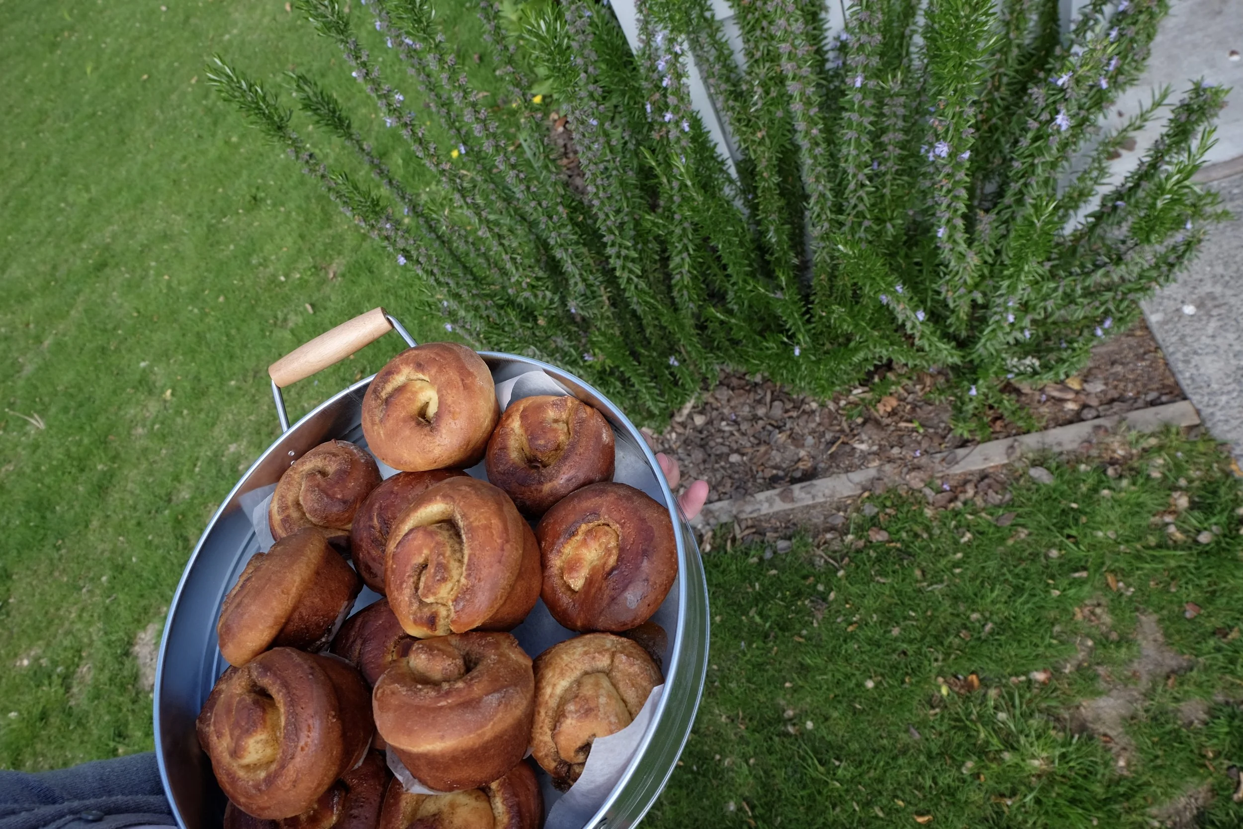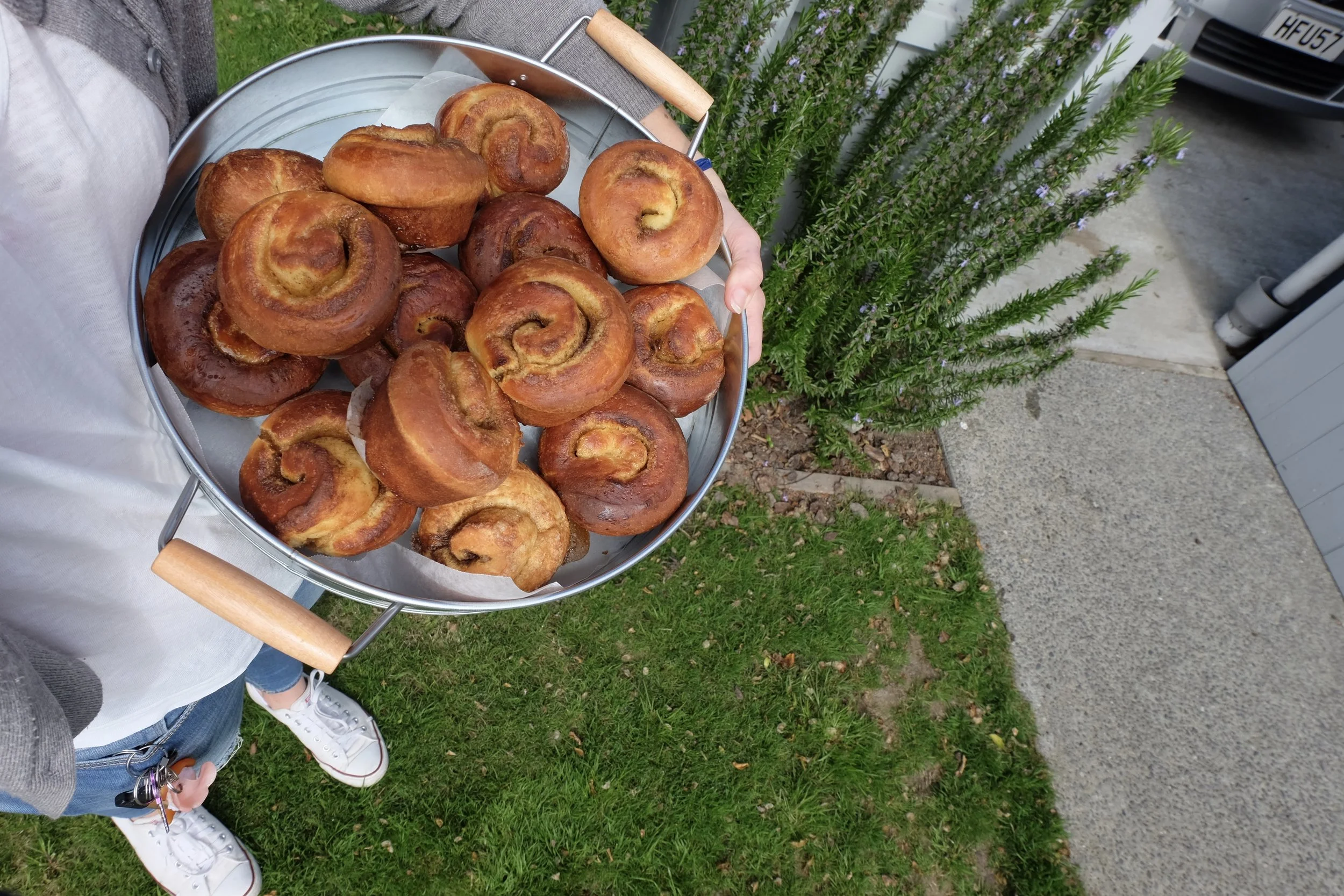 Ideally you would wake up at 3am to start the dough so it could be ready in time for morning tea. For convenience sake you can make it the night before and leave it in the fridge to prove. The only issue with this is the dough is then too cold to do a second rise once all rolled up into its scrolls. I kind of cheat and warm my oven up to just under 50 degrees and pop my cold scrolls in for fifteen-twenty minutes to get up to room temperature then remove them to rise while you crank the oven up to baking temp. If you've got all the time in the world then I would recommend leaving the dough on the bench to rise for a couple of hours instead.