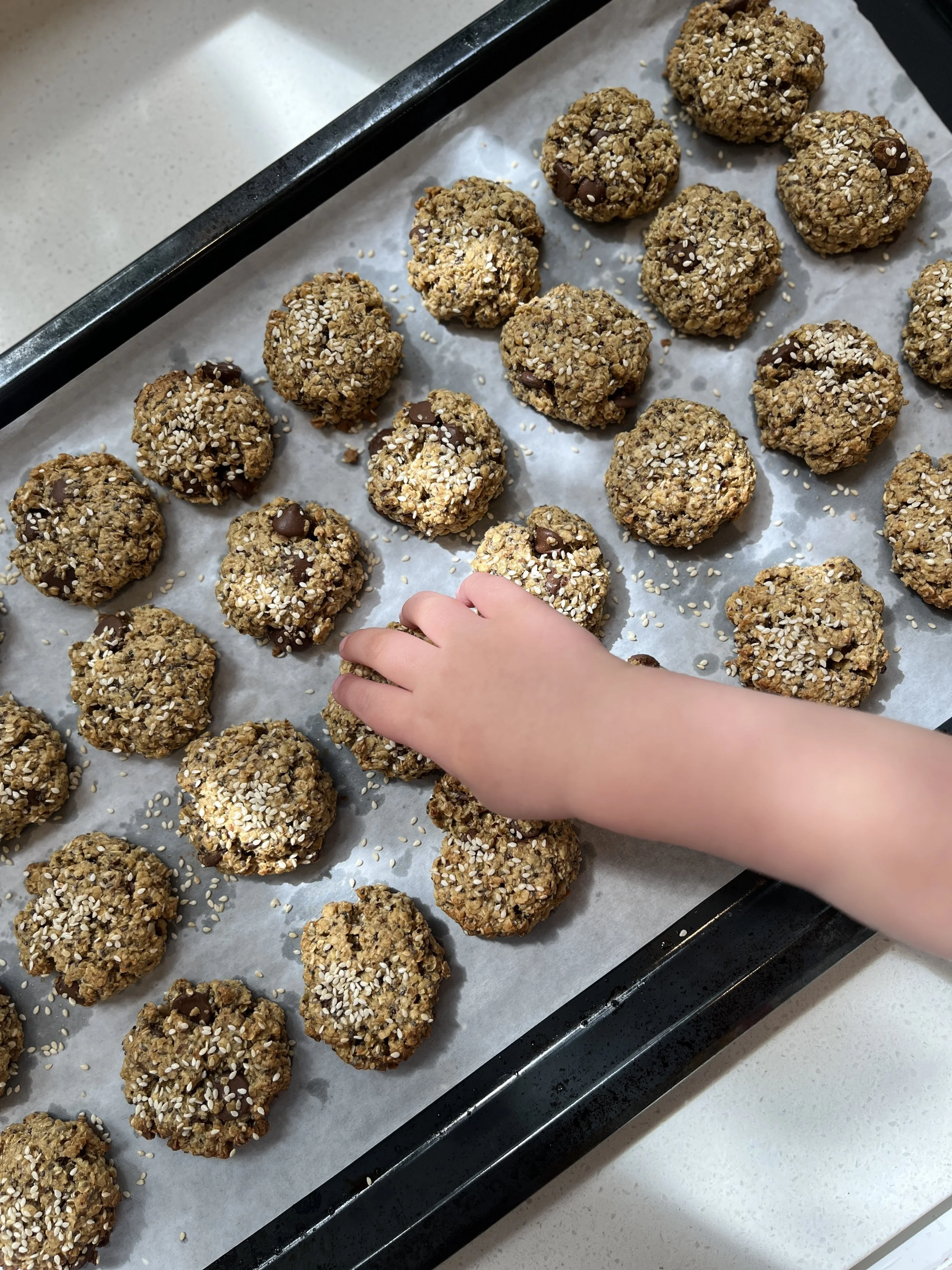 Cue these biscuits. Now these are technically lactation cookies but hear me out. I started making these for everyone with a new baby in the house. Supposedly the ingredients are great for milk supply but I personally found them just a great source of energy and rather delicious. They make great afternoon snacks for gremlins and my husband even steals a handful when going out riding as they are full of both simple carbohydrates and more slow release complex ones.